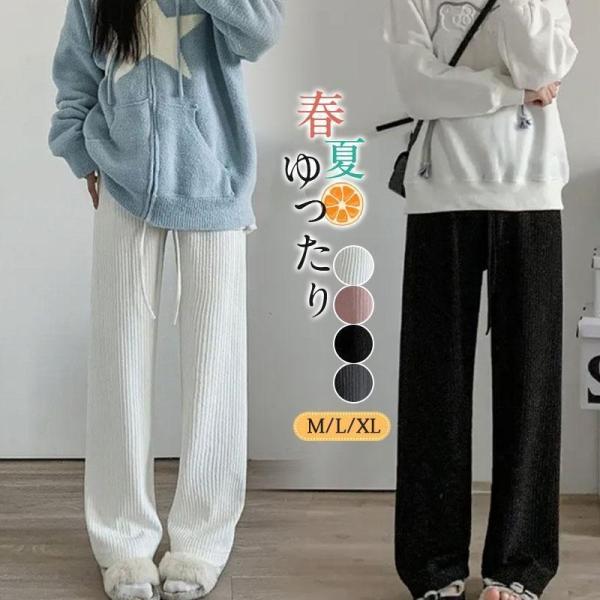 ワイドパンツ レディース スウェットパンツ エンボス加工 ゆったり ストレートパンツ ウエストゴム 春夏 無地 ひんやり 体型カバー 薄手