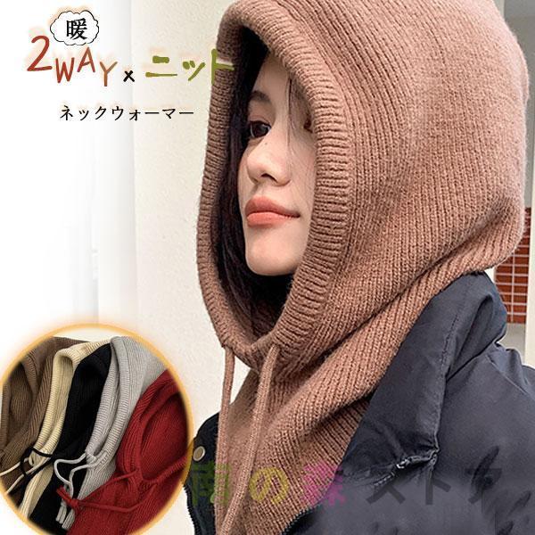 値下げ フードウォーマー バラクラバ レディース メンズ ユニセックス 黒 ネックウォーマー 帽子 マフラー 3way ニット スヌード 保温