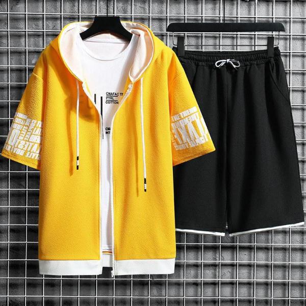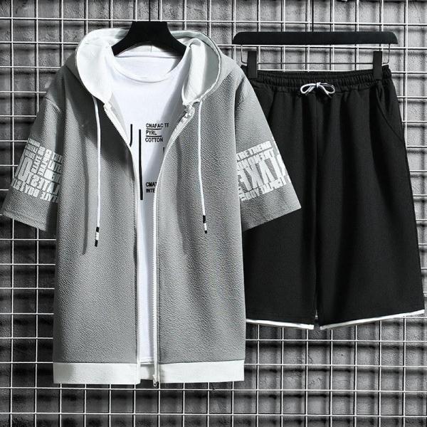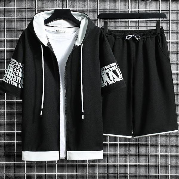 セットアップ メンズ 半袖 パーカー ショートパンツ ジップアップ トップス ハーフパンツ ジャージ スウェット 運動着 スポーツ 旅行 接触冷感