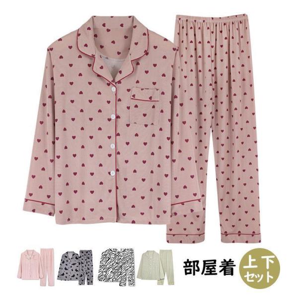 パジャマ 寝巻き パーカー セットアップ レディース ルームウェア 前開き 長袖 胸ポケット付き 大きいサイズ 可愛い 秋冬 部屋着 寝巻き