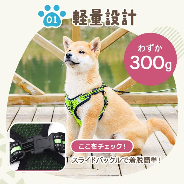 犬 ハーネス メッシュ リード 簡単装着 クッション 抜けない 脱げない 涼しい 小型犬 中型犬 大型犬 首輪 胴輪 安心 頑丈 散歩