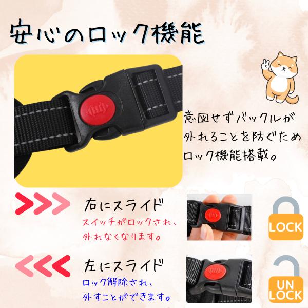 ハーネス 犬 簡単装着 脱げない 頑丈 撥水 クッション リード バックル ロック機能 ナスカン 夜 反射 抜けない 小型犬 中型犬 大型犬 首輪 胴輪 安心 散歩