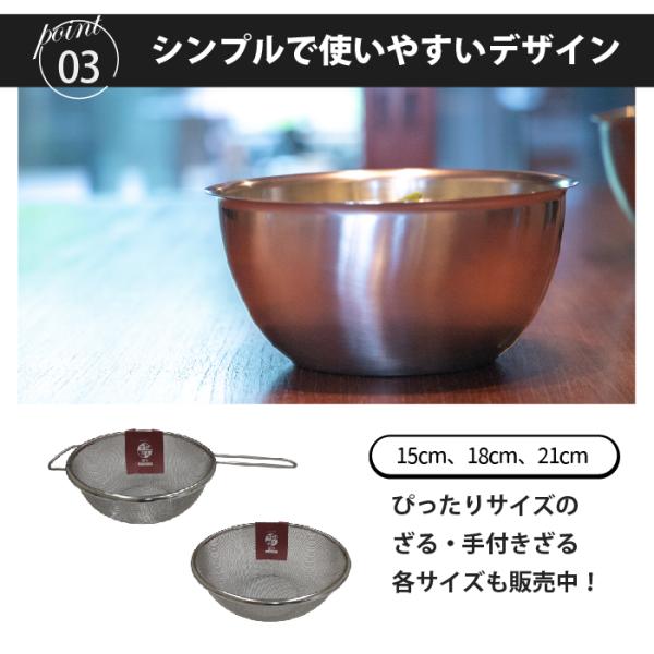 一般的なボールより深型になっており、混ぜやすく、たっぷりものが入ります。