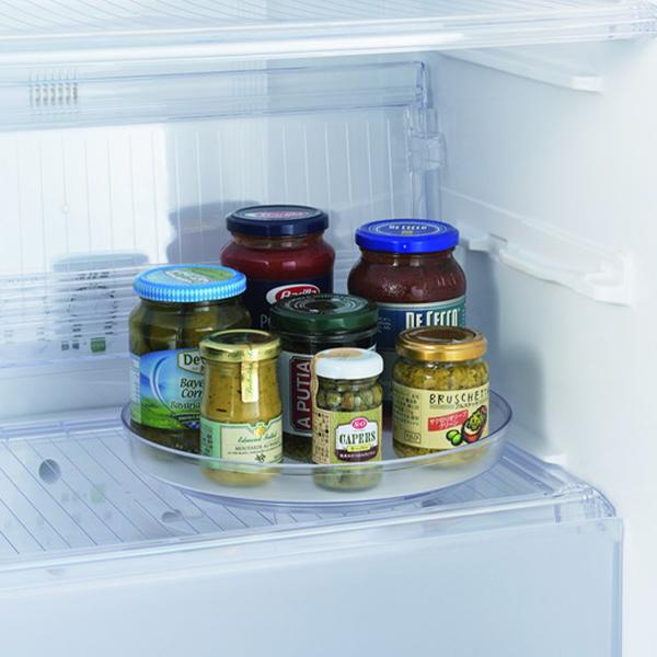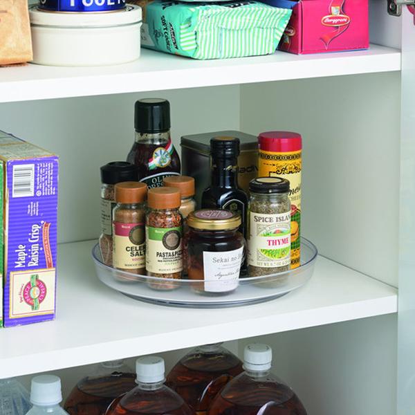 360°回転で奥のものが取り出しやすい。回しても倒れにくいすべり止めシート付。棚の中で、食卓で。