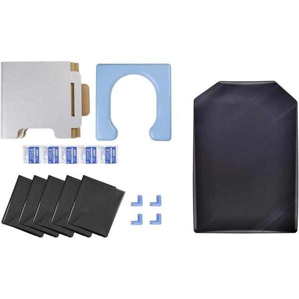 ●セット内容:トイレ本体(脚キャップ4個付)、汚物袋5枚、凝固剤5個、簡易ポンチョ1枚