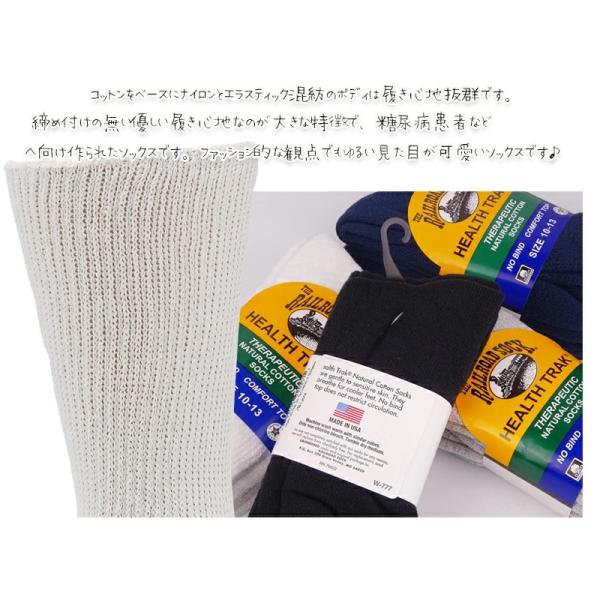 トップのリブにゴムが入らない糖尿病患者などへ向けに作られたソックスで全体的にゆるい作りが特徴。コットンをベースにナイロンとエラスティック混紡。履き心地の良さとたるませた時の雰囲気も抜群。