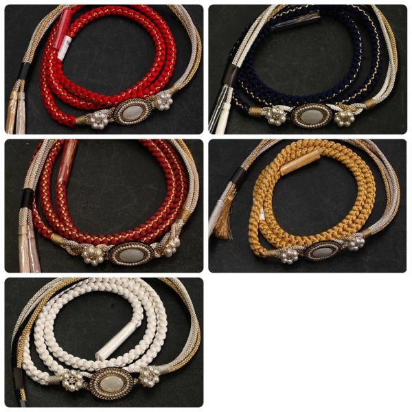 82DR45020【在庫処分品】帯締め/振袖用帯〆/オーパルブローチ/22555/2色四本バラ/組紐/手組み/丸打ち/並尺/絹/金属糸/中国製
