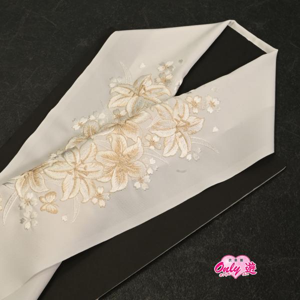 91DR30020【少々難有り】【新作】半襟/刺繍半衿/DA009-1/白/金/百合/刺繍/振袖用/日本製