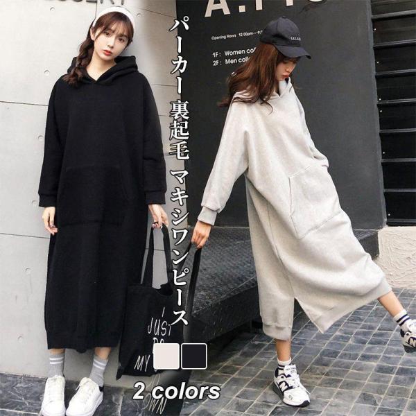 ワンピース レディース 秋冬 きれいめ フード付き パーカー 裏起毛 マキシワンピース 長袖 着痩せ 通勤 旅行ドレス お出かけ 大人韓国風