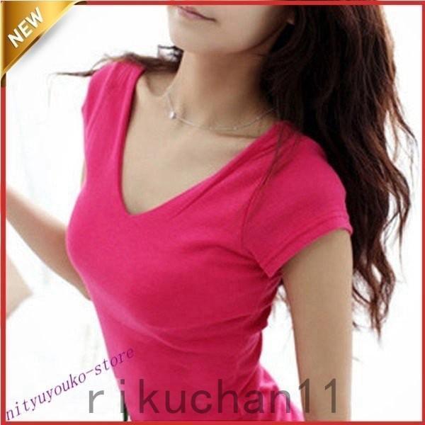 レディース Vネック Uネック シャツ 無地 tシャツ インナー トップス 春 夏 春夏半袖