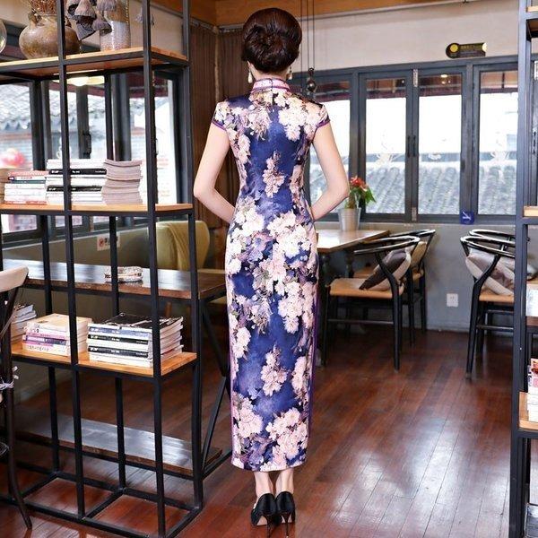 チャイナドレス ロング 花柄 シルクチャイナドレス チャイナ服