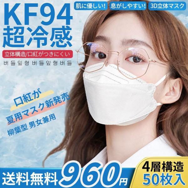 【冷感マスク新発売】夏用マスクKF94マスク50枚入り柳葉型通気接触冷感韓国風口紅がつきにくい立体3Dマスク男女兼用
