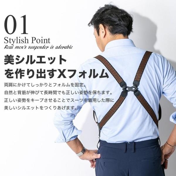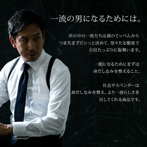フォーマルシーンはもちろん、ビジネス、カジュアルでも使えるサスペンダー。