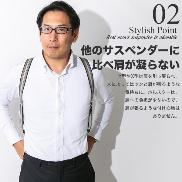 サスペンダー 社長サスペンダー 日本製 ホルスター (ガンタイプ サスペンダー) ビジネス メンズ H型 本革 X ブラック 織柄生地 日本製