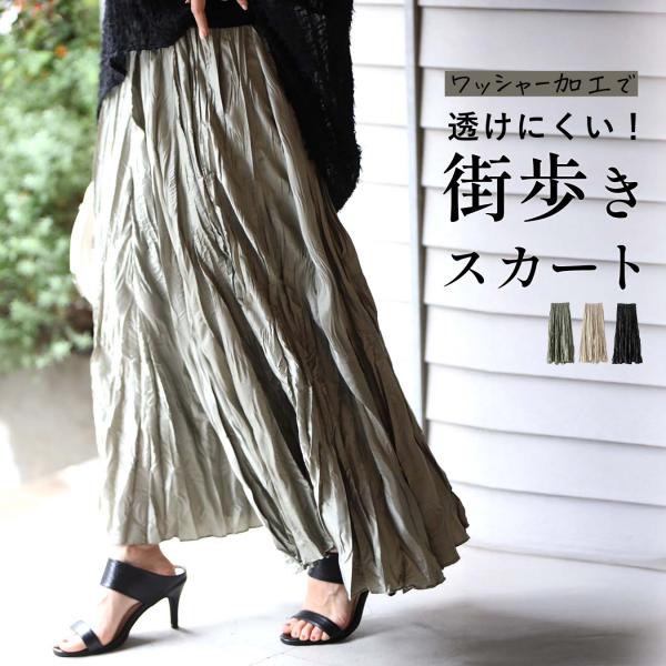 スカート プリーツ ボトムス プリーツスカート ロング シワ加工 ワッシャー きれいめ カジュアル 清涼感