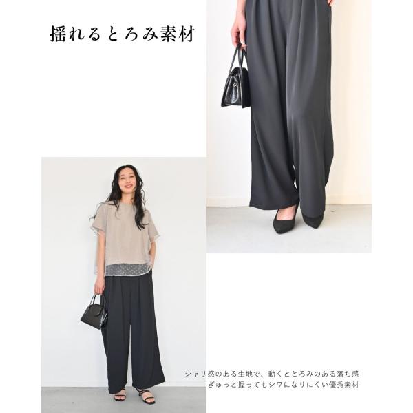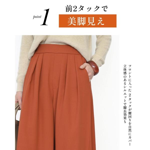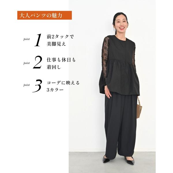 パンツ タックパンツ きれいめ 着心地抜群 無地 毎日使える 楽ちん ウエストゴム 体型カバー オフィス カジュアル