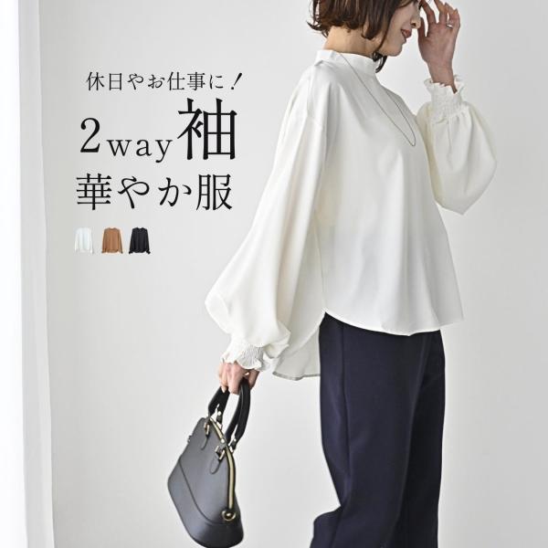 ブラウス レディース 袖フリル トップス 華やか オフィス カジュアル 通勤 きれいめ 大人女子 ブラック ホワイト ブラウン