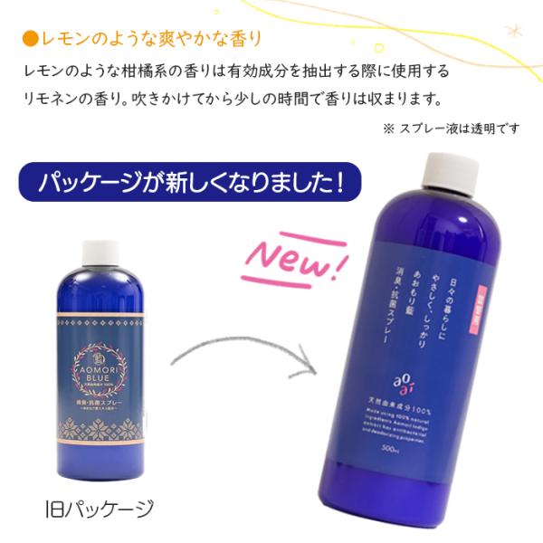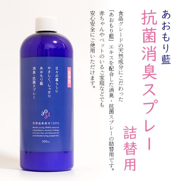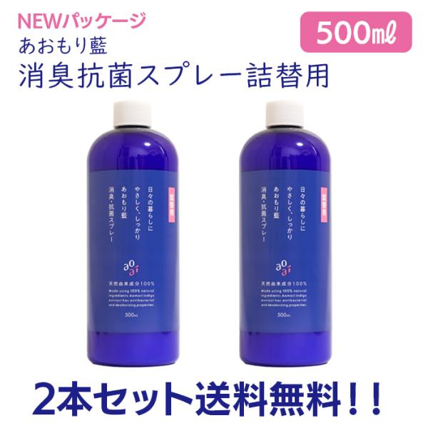 日本製 あおもり藍 (500ml×2本) 【詰替え用】 消臭・抗菌 柑橘系 消毒 AOMORI BLUE あおもり 藍 エキス配合 青森藍 マスク まん延防止