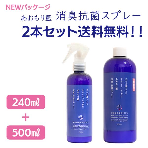 日本製 あおもり藍 (500ml詰め替え×240mlスプレー) 消臭・抗菌 柑橘系 消毒 AOMORI BLUE あおもり 藍 エキス配合 青森藍 マスク まん延防止