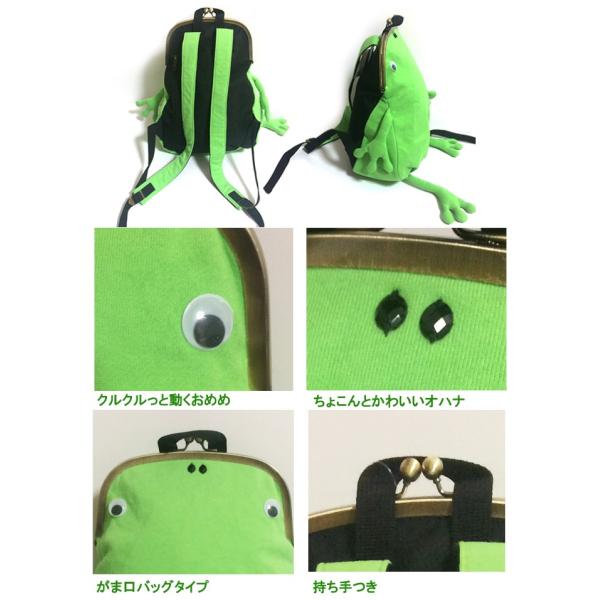 ありそうでなかったガマグチのカエルリュックさらに濃いグリーンのカエルが登場!!