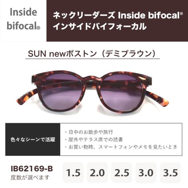 ネックリーダーズ 老眼鏡×サングラス 遠近両用 Inside bifocal(インサイドバイフォーカル ) ウェリントン(デミブラウン)爆買 イベント