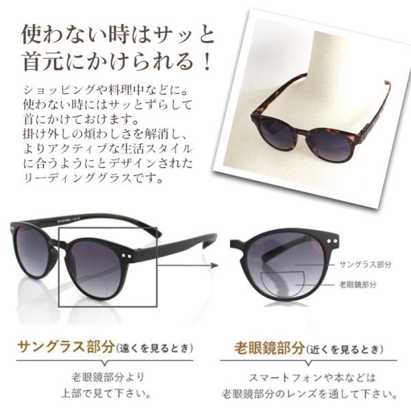 外出時でもサングラスからリーディンググラス(老眼鏡)に掛け替える煩わしさから解放される。