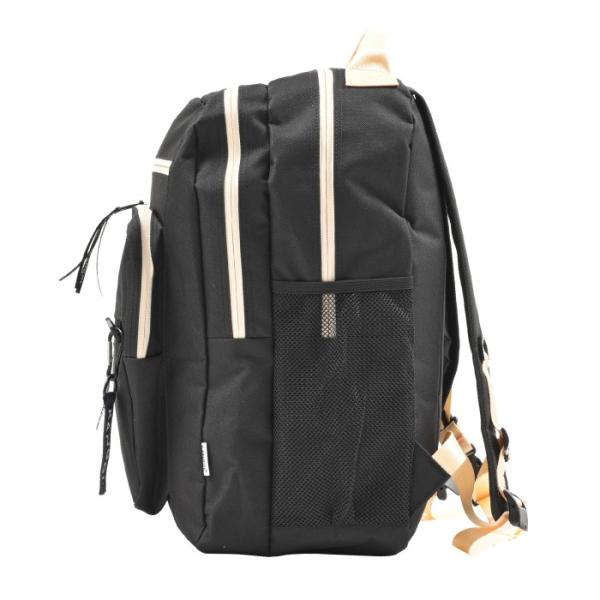 フロント部分にポケット、左右のサイドポケット、サブ・メインと多くのポケットが配置されており、