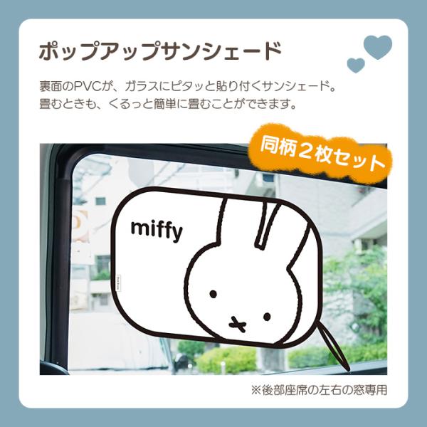 ミッフィー ポップアップ サンシェード 猛暑対策 暑さ対策 後部座席用 日よけ 日除け 暑さ対策 シェード 車 サイド 車内 後部座席 後席 車用 車用品 車カーテン