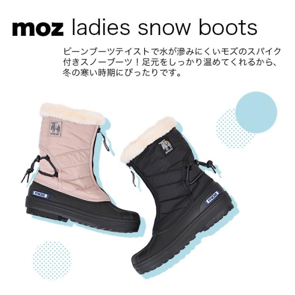 moz モズ ウインターブーツ レディース 無地 4cm防水 スパイク付き ショート丈 軽い 撥水 雪 モノトーンファスナー 爆買 イベント