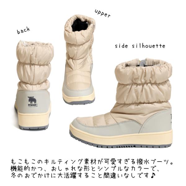 (MOZ)モズ ウインターブーツ レディース 4cm防水 ダウンのような もこもこ ショートブーツ