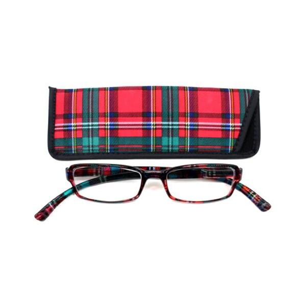 老眼鏡 おしゃれ 男女兼用 軽量 ネックリーダーズ 首かけ ブルーライトカット 眼鏡ケース付きクリー アーチェック レッド Bayline ベイライン 爆買 イベント