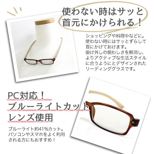 老眼鏡 おしゃれ 男女兼用 軽量 ネックリーダーズ 首かけ ブルーライトカット 眼鏡ケース付き クリアブラウン×ベージュ Bayline ベイライン 爆買 イベント