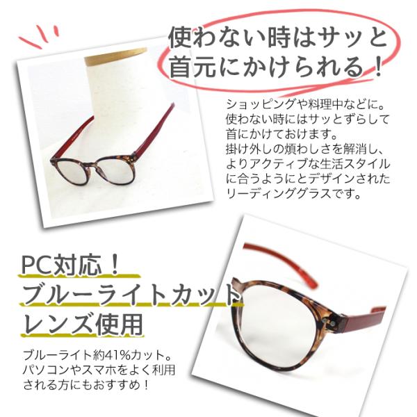 老眼鏡 女性 おしゃれ 男女兼用 軽量 ネックリーダー ボストン ブルーライトカット 眼鏡ケース付き デミブラウン×レッド 爆買 イベント