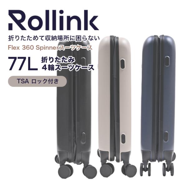 Rollink(ローリンク)スーツケース 77L 4輪タイプ TASロック FLEX 360°Spinner 折りたたみ キャリーバック 大容量 スリム 薄い コンパクト 爆買 イベント