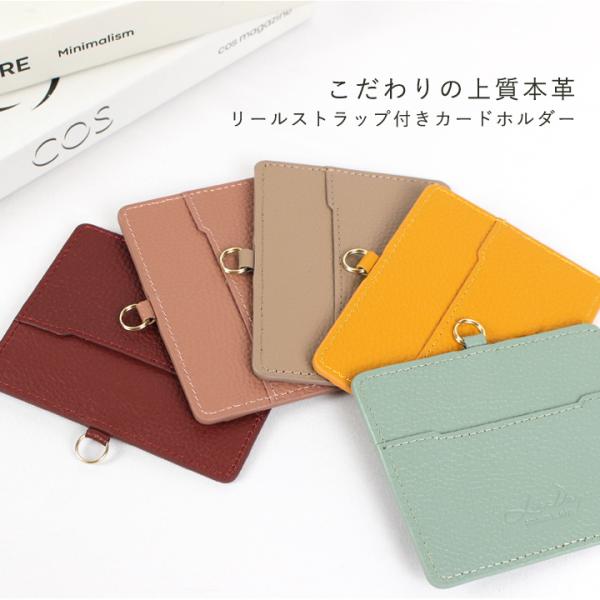 【映画・ドラマ使用】 idカードホルダー レディース リール付き リールストラップ カードホルダー id 本革 牛革 レザー 収納 カード入れ liz06