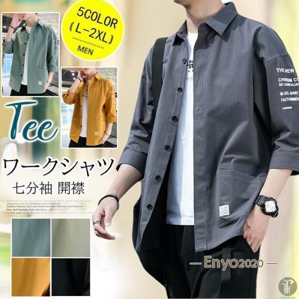 メンズファッションシャツ メンズ 七分袖 ワークシャツ 中袖シャツ オープンシャツ 薄手 涼しい 夏服 夏 春夏 コーデ ファッション 無地