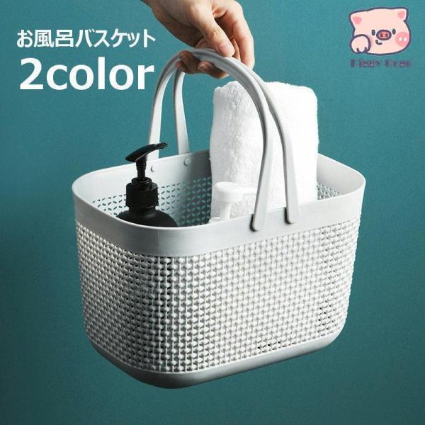 お風呂バスケット お風呂用カゴ かご 小物入れ 収納 お風呂用品 ランドリーバスケット 収納ボックス ケース 持ち手付き 持ち運び 穴あき 水切り 通