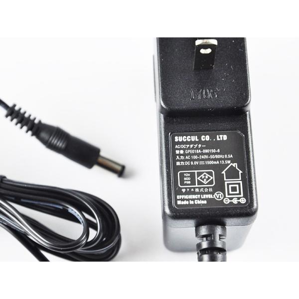 汎用スイッチング式ACアダプター 9V/1.5A/最大出力13.5W 出力プラグ外径5.5mm(内径2.1mm)PSE取得品 SUCCUL