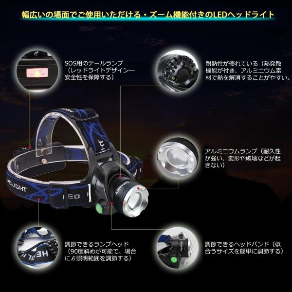 LEDヘッドライト 懐中電灯 アウトドア 3モード ズーム可 1200LM CREE XML T6 ヘッドランプ 防水防災 電池 充電器 USB充電 調節可 高光量 軽量 SUCCUL