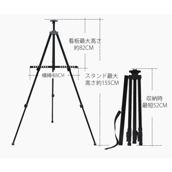 看板用 三脚 イーゼル 強化モデル 高さ最大155cm 高さ調整機能 3段伸縮 収納袋付き 絵画 メニューボード 案内板 看板 ポスター 装飾 案内パネル 展示場 店先