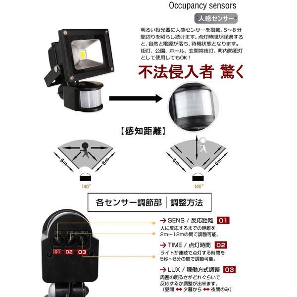 LED投光器 10W 100W相当 センサーライト 人感 配線付 屋外 昼光色 防犯ライト 駐車場 倉庫 防水加工 広角 防水 SUCCUL