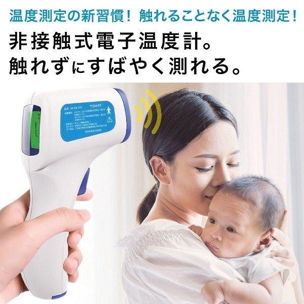 即納 非接触式 電子温度計 電池式 メモリー機能付 おでこ温度計 遠赤外線センサー 高精度 メモリー 配線不要 液体 室温 感染対策 触れず
