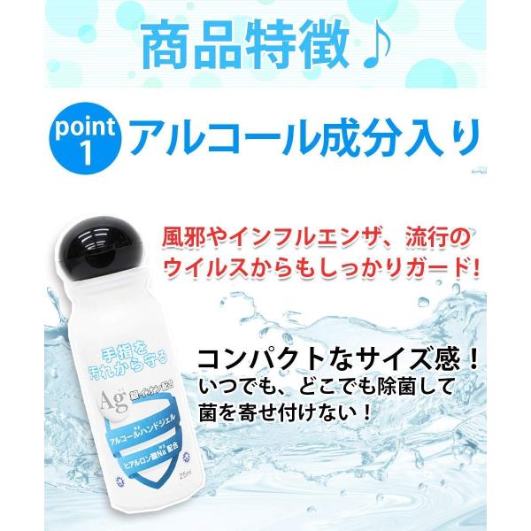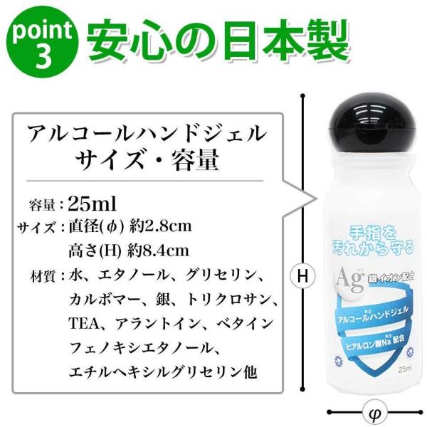アルコール ハンドジェル 日本製 洗浄 消毒 予防 ハンドソープ 携帯用 殺菌ジェル 25ml 銀イオン配合 ヒアルロン酸Na配合 洗浄 ウイルス対策 アルコール除菌