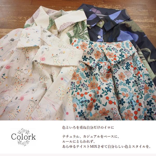 Colork カラック コットン 春にぴったりな アニマル柄 花柄 シャツ ブラウス 犬 猫 フラワー レディース 春 長袖 羽織り