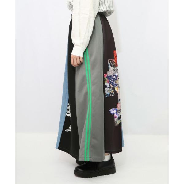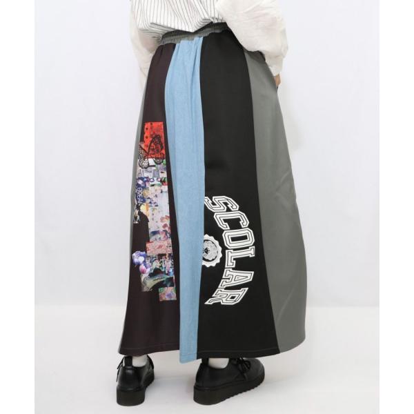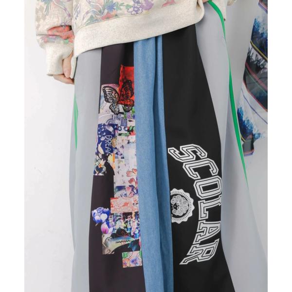 ScoLar スカラー コラージュ柄 異素材 切り替え リメイク風 スカート