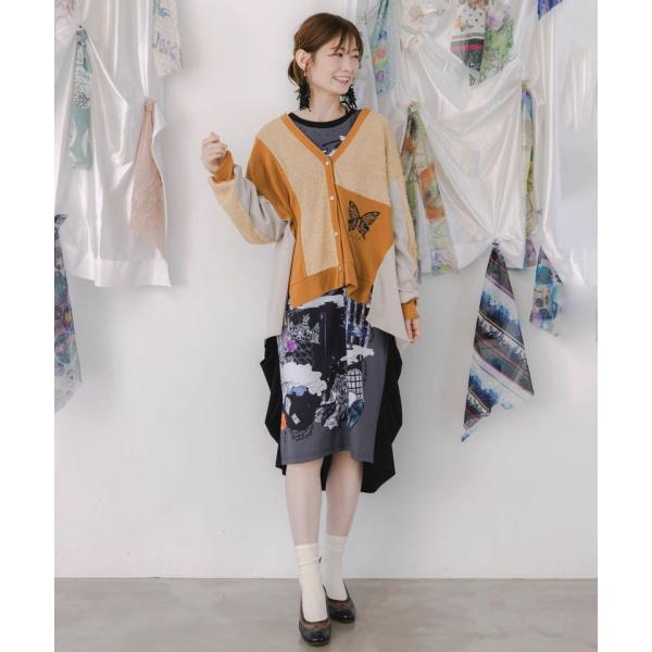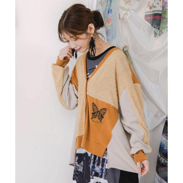 is ScoLar イズスカラー ニットソー×シャギーニットソー切り替え ちょうちょ柄刺繍カーディガン