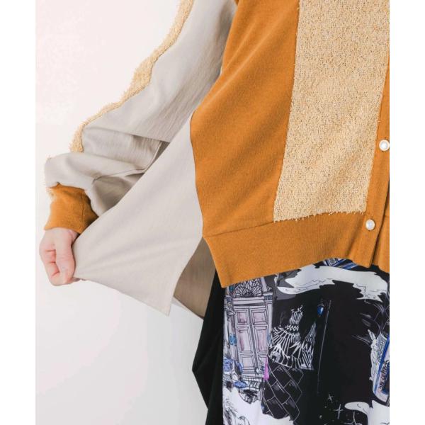 ふんわりとしていて手触りのよいシャギーニットが目を引く、ニット×シャギーニット×布帛の3種類を掛け合わせたMIXカーディガンが登場。