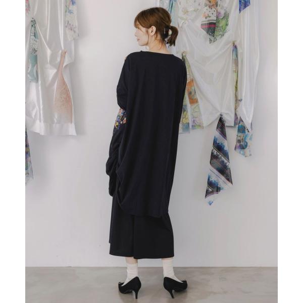 is ScoLar イズスカラー 天竺×起毛柄入り ニットソー 異素材切り替え ドロスト ワンピース