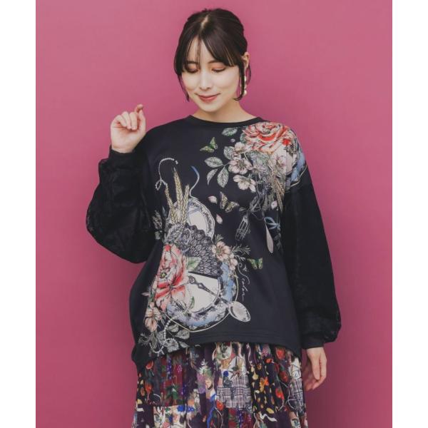 is ScoLar イズスカラー 花蝶裏毛×レース 切替 プルオーバー