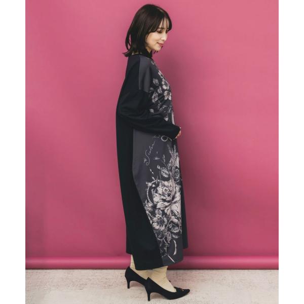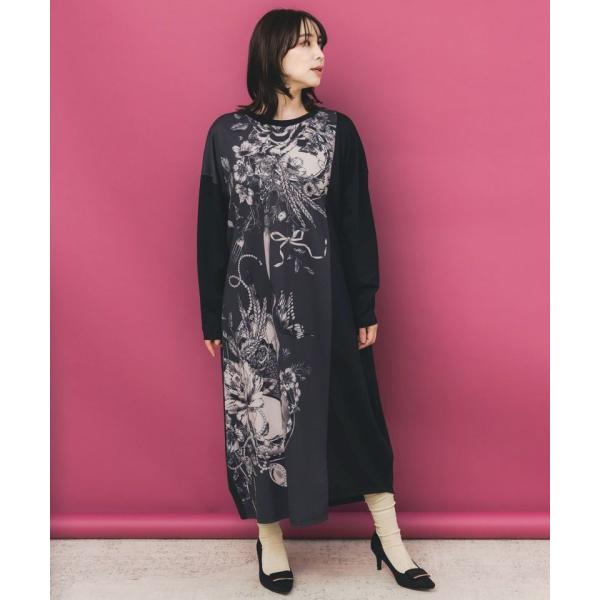 【SALE セール】 is ScoLar イズスカラー 花柄×無地 バイカラー 裏毛 ワンピース レディース 長袖 ミモレ丈 レトロ カワイイ